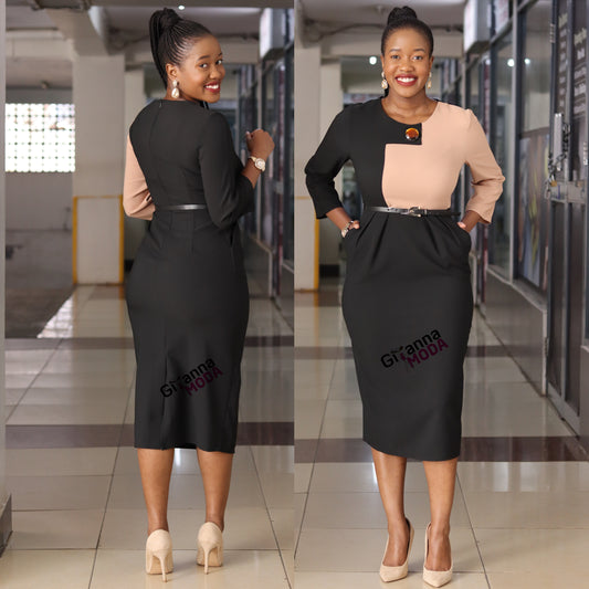 Beige and Black Contrast Bodycon