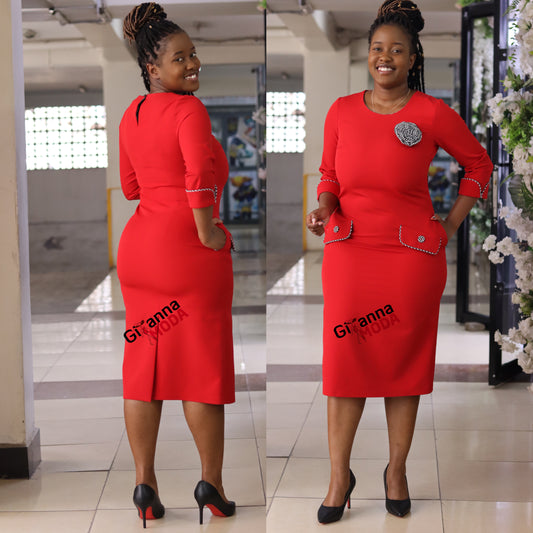 Red Sleeved Round Neck Bodycon