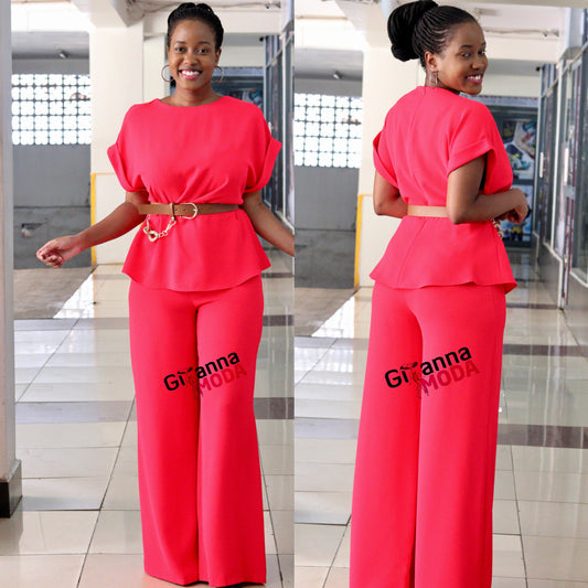 Red Kimono Sleeve Belted Set