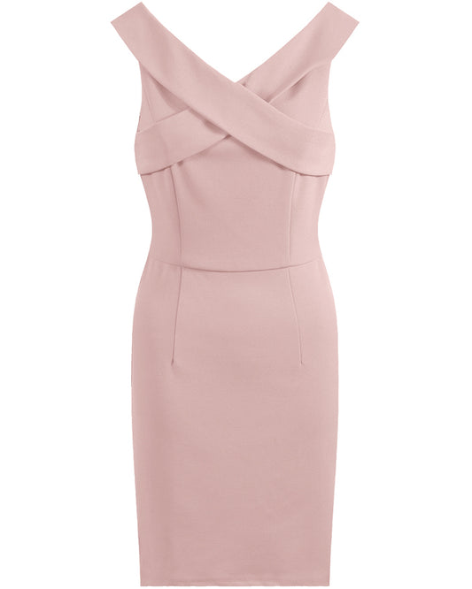 Rose Pink Pleated Neckline with Knot Trim Bodycon