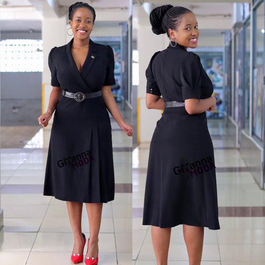 Black Collared Wrap Dress