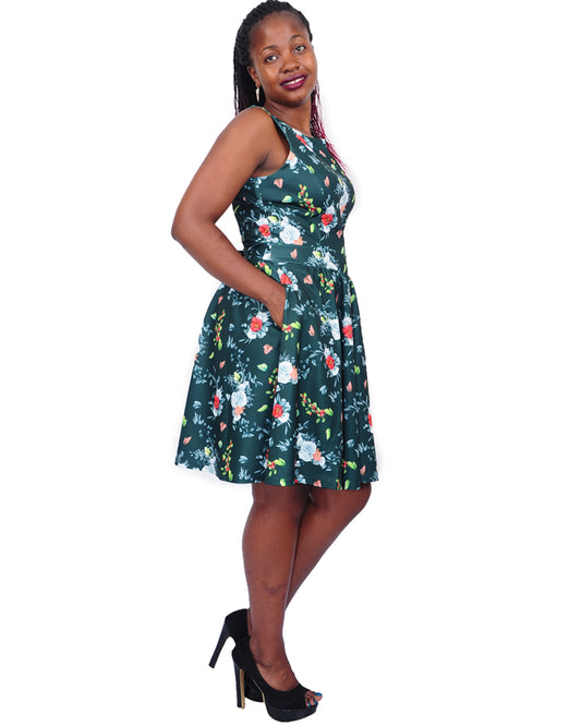 Vintage Roses On Green Colored Base Skater