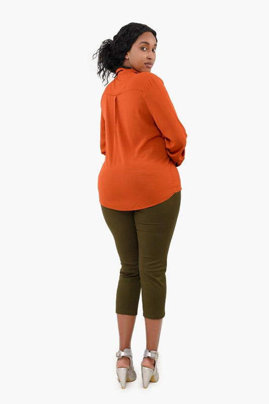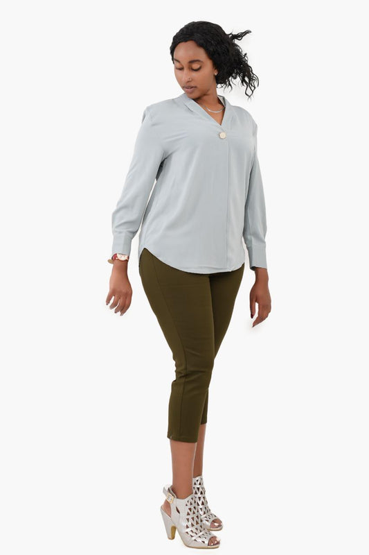Long Sleeve V-neck Blouse with Front Detail