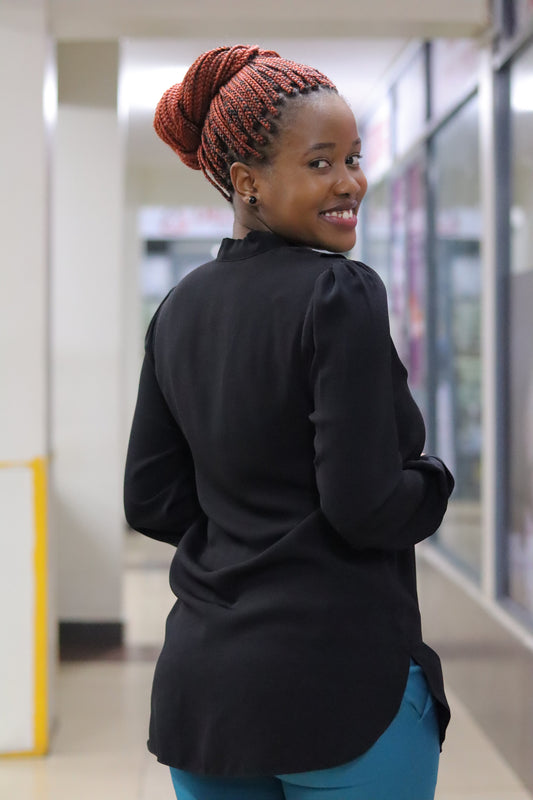 Side Frill Longline Black Blouse