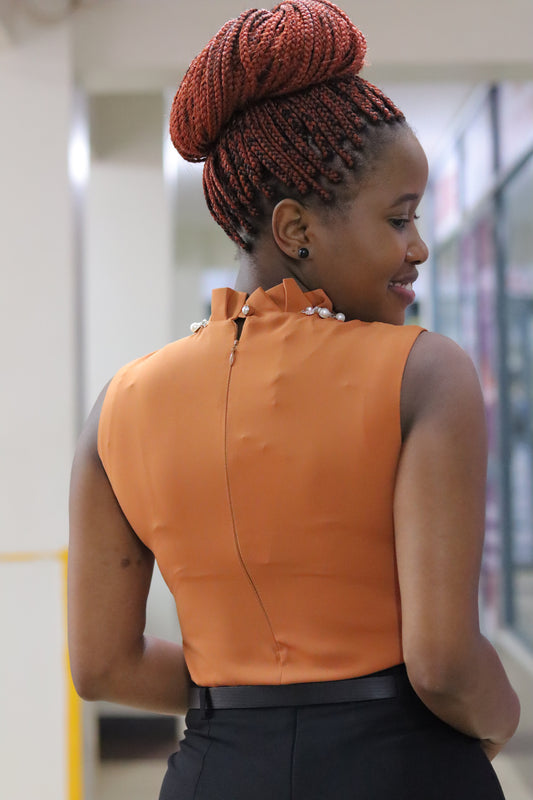 Button Down Burnt Orange Sleeveless Blouse