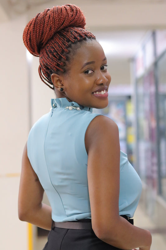 Sleeveless Ruffle Baby Blue Blouse