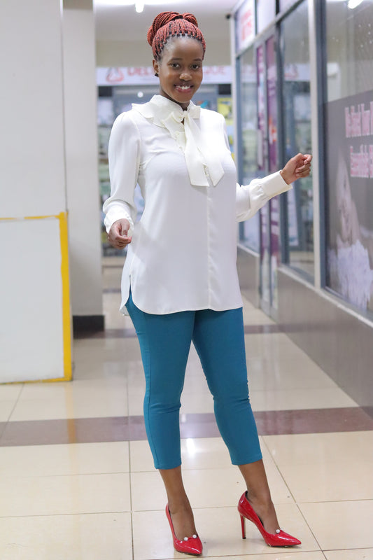 Side Frill Longline Ivory White Blouse