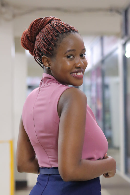 Round Neck Peach Sleeveless Blouse