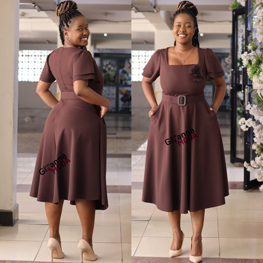 Brown Flutter Sleeved Dress