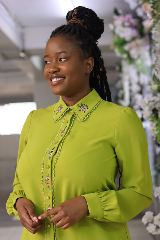 Lime Green Collared Long Sleeved Dress