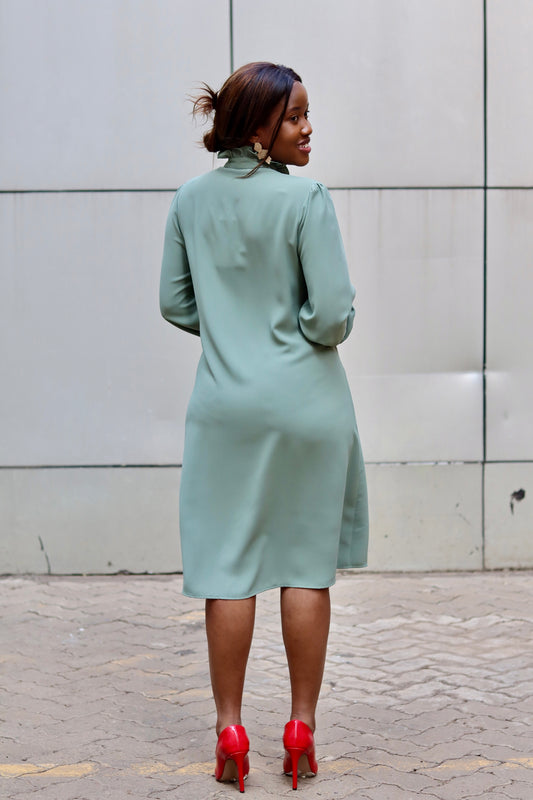 Mint Long Sleeve Frilled Shirt Dress