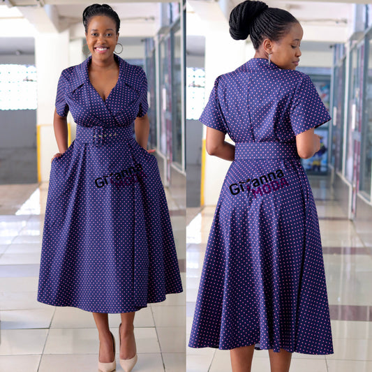 Navy and Pink Polka Sleeved Dress