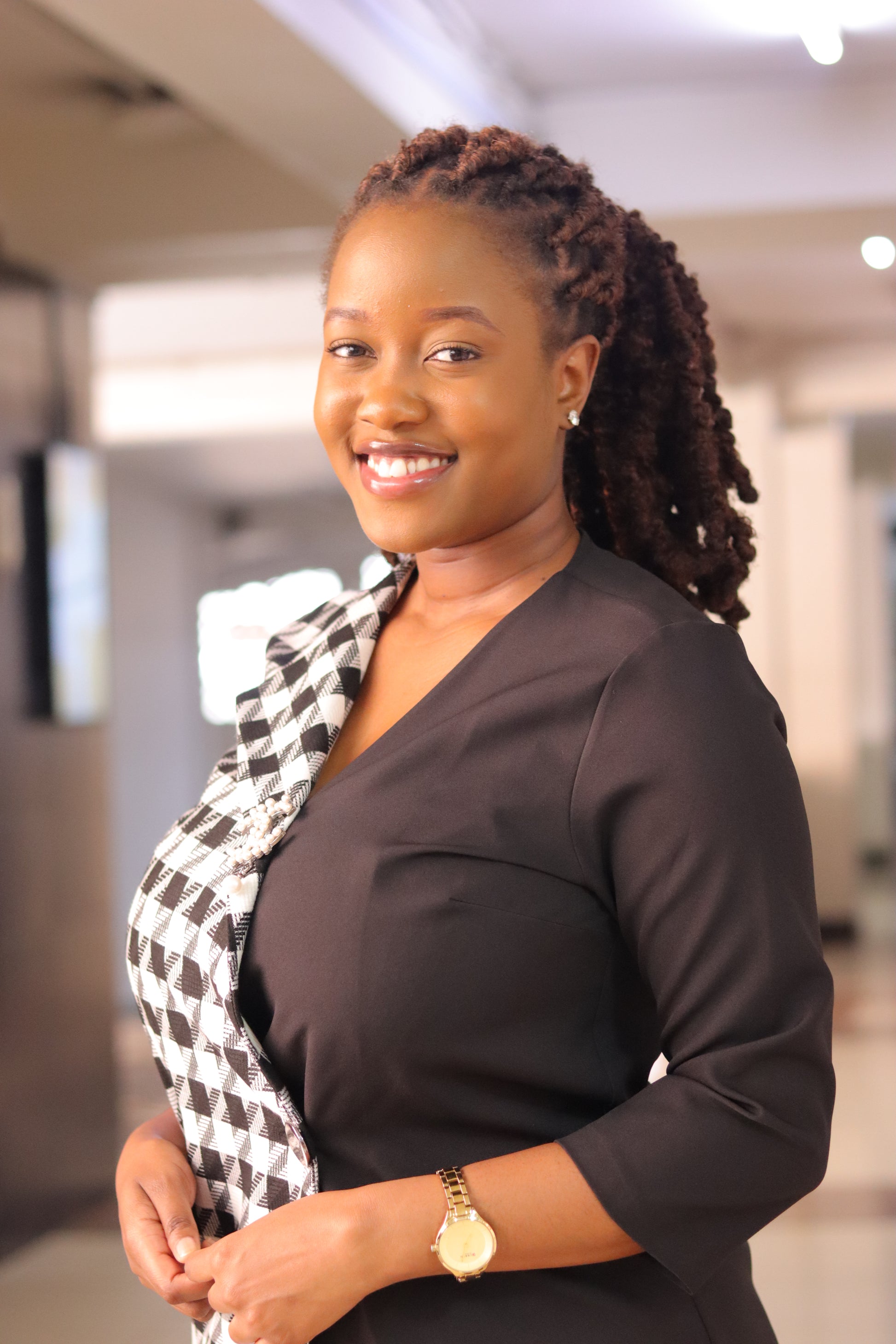 Black Houndstooth Contrast Blazer Dress