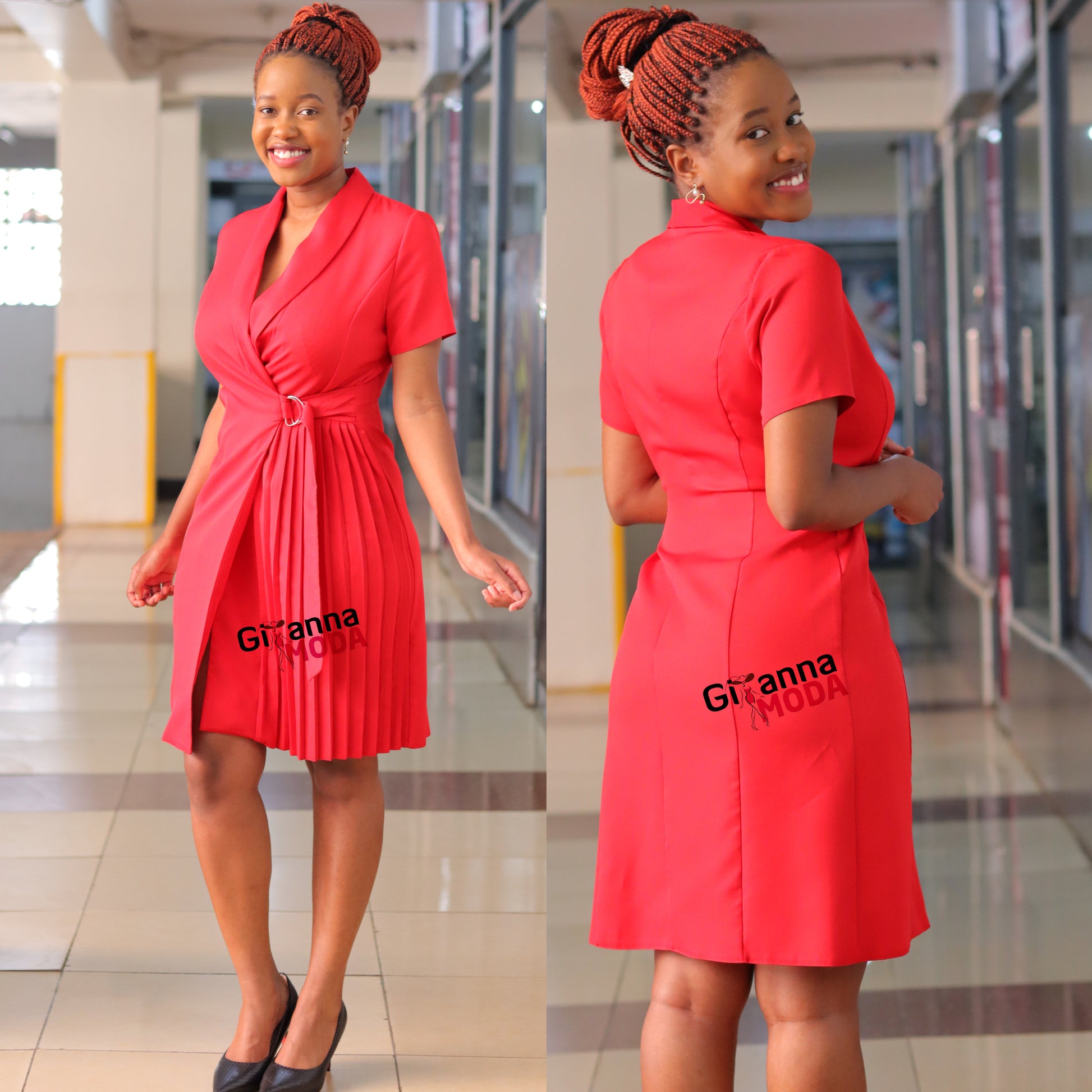 Red Side Buckle Sunray Dress