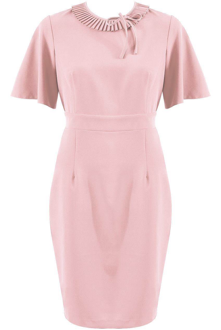 Rose Pink Pleated Neckline with Knot Trim Bodycon