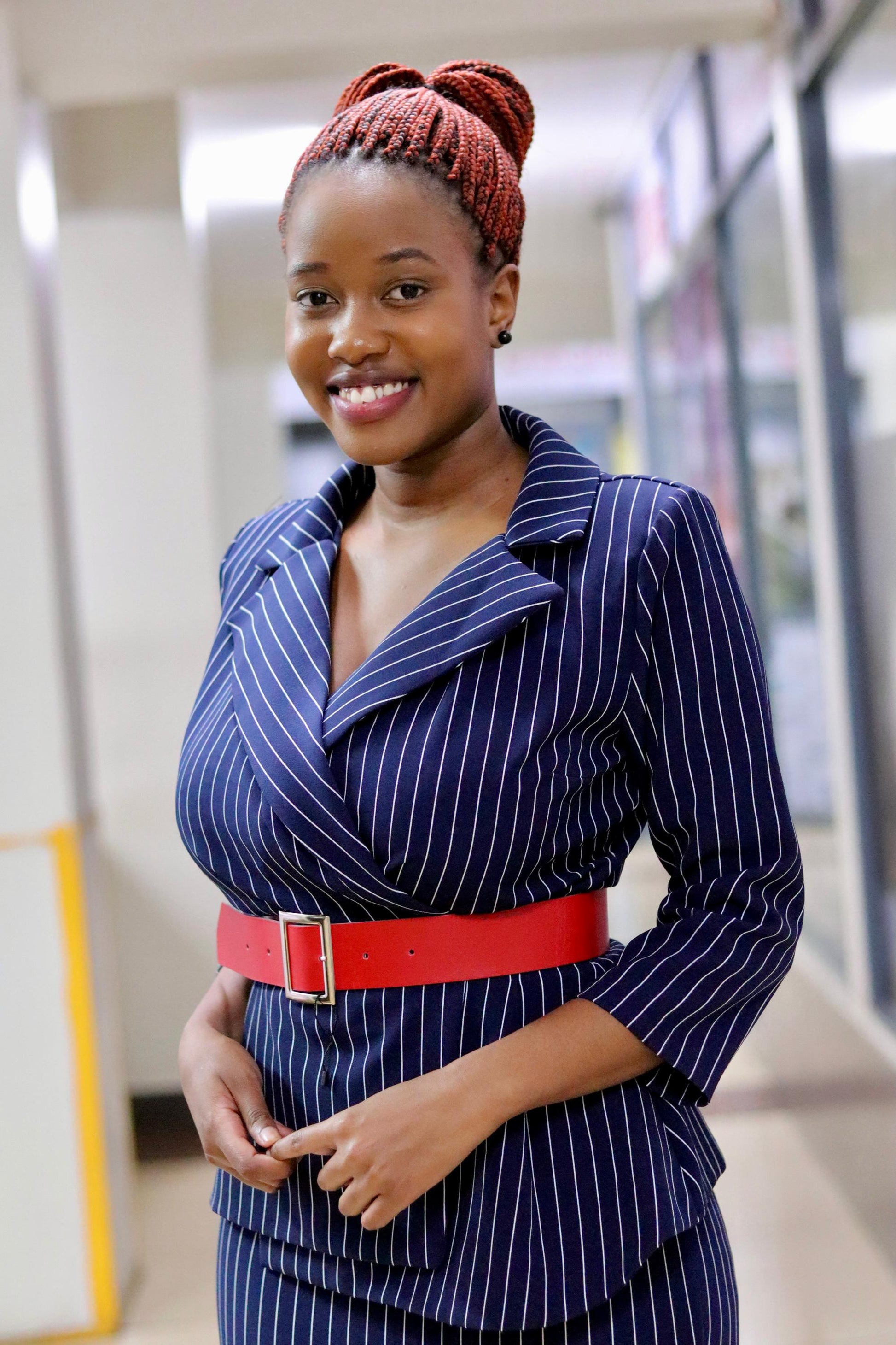 Stripped White/Blue Skirt Suit Set
